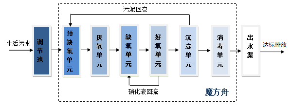 魔方(fāng)舟泥膜耦(ǒu)合脫氮除磷一體化(huà)汙水處理設備(bèi)采用泥膜(mó)耦合A3O工藝(yì),具有故障點少、工(gōng)藝穩(wěn)定性高,多點精準(zhǔn)氣提控製、低能耗,出水水質穩定,可無人值守的特點。
